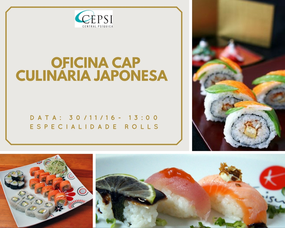 Dentre as atividades programadas no mês, no dia 31/11/2016 irá acontecer no CAP (Centro de atenção psíquica) – Central Psíquica, oficina Comida Japonesa.